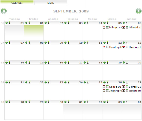 On Intersite you have your own calendar. The calendar automatically shows all relevant events/activities, created by your club and where you have received an invitation.